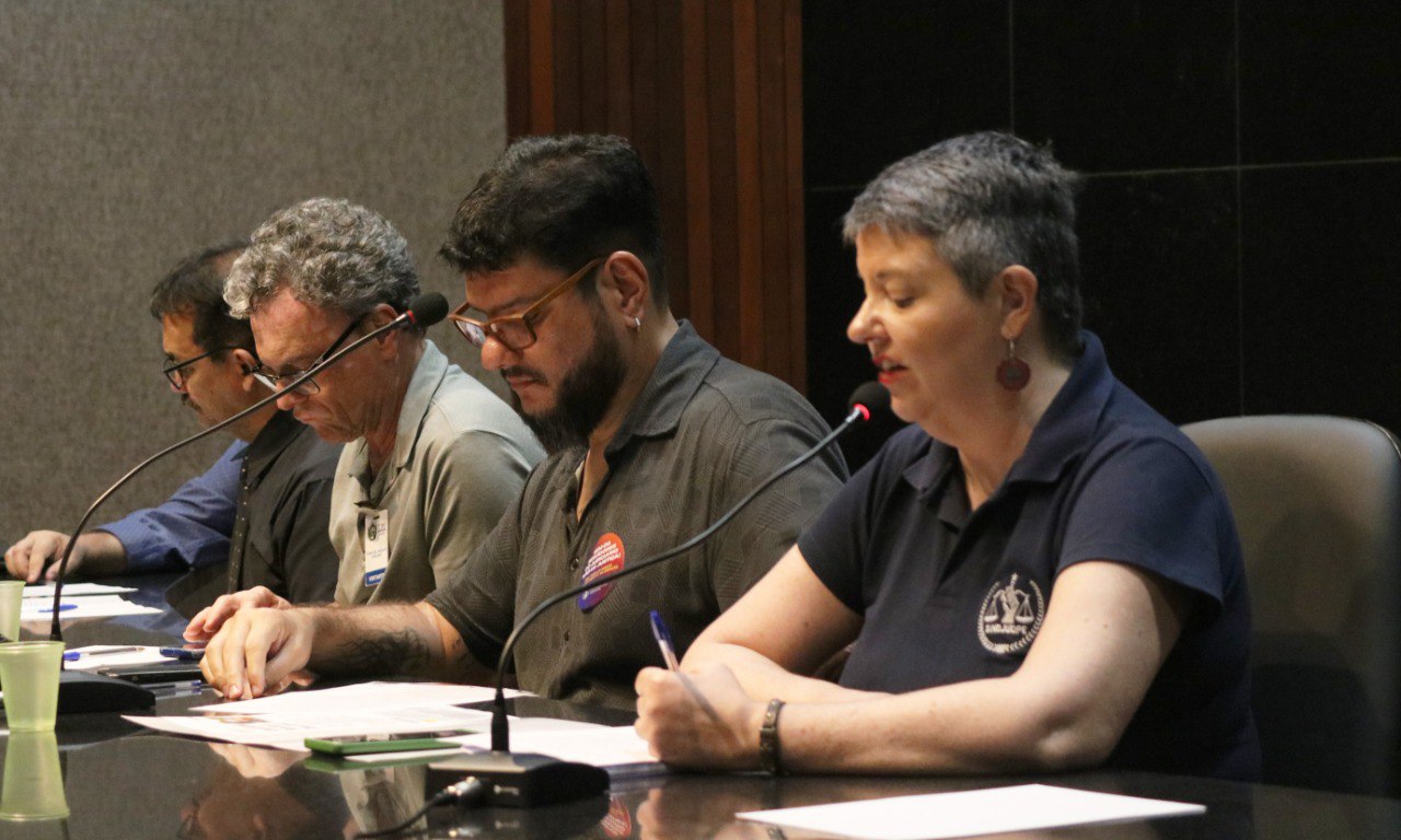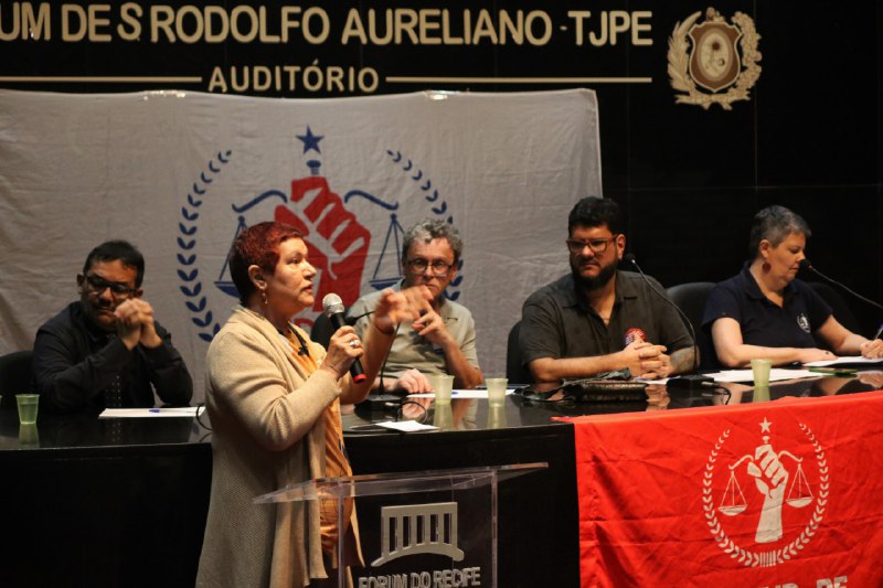 A mesa foi composta pelo coordenador-geral Giuseppe Mascena, pela coordenadora de administração Karyna Almeida, pelo presidente da ASPJ-PE, Fausto Negromonte, e pelo vice-presidente do SINDOJUS-PE, Gláucio Angelim.