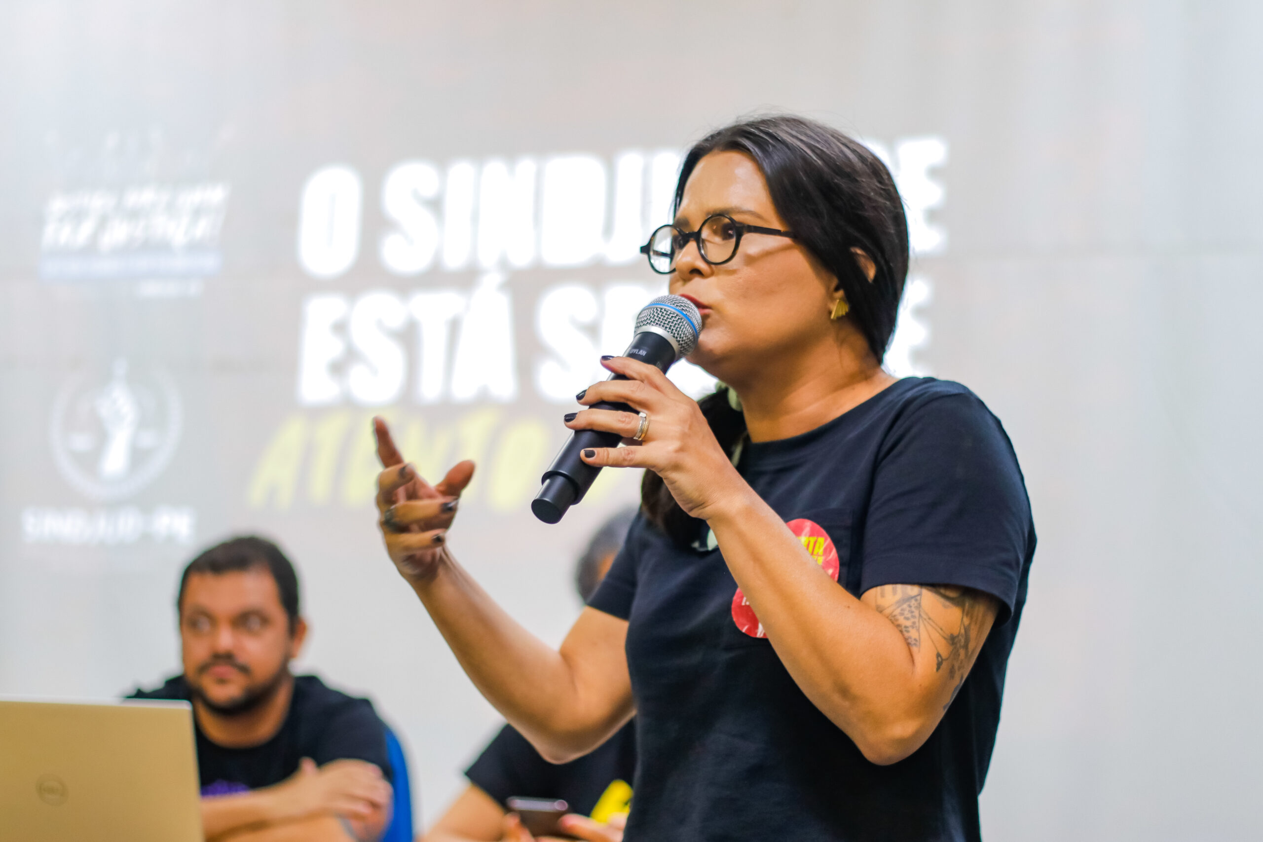 Entre os encaminhamentos também foi deliberada a gravação de um vídeo especial com a participação dos servidores e servidoras e dirigentes do SINDJUD-PE vestindo a camisa “Luto Por Justiça!”. O material foi gravado ao final da Assembleia e será compartilhado nas redes sociais do Sindicato nos próximos dias. Fique ligado/a!