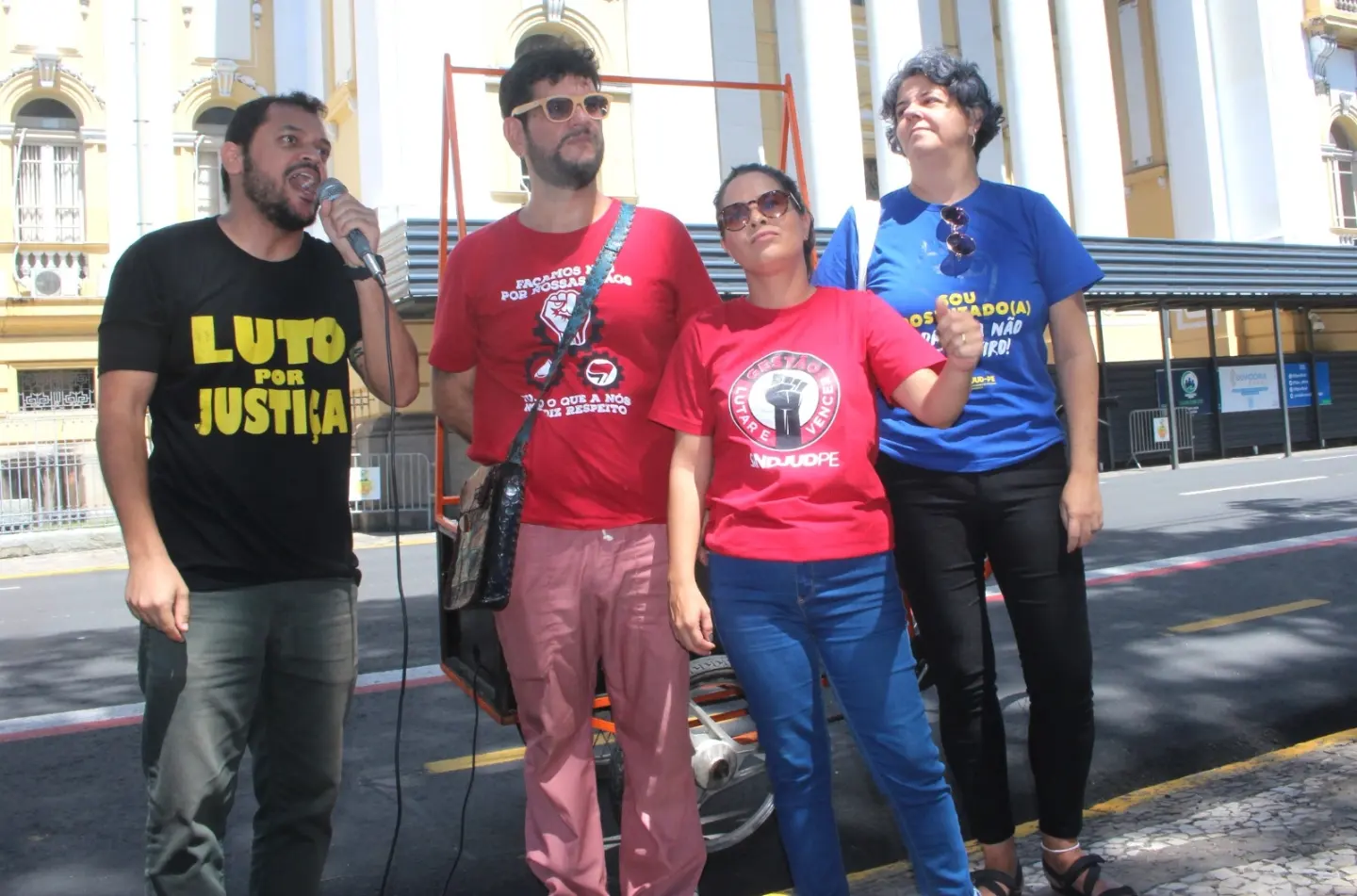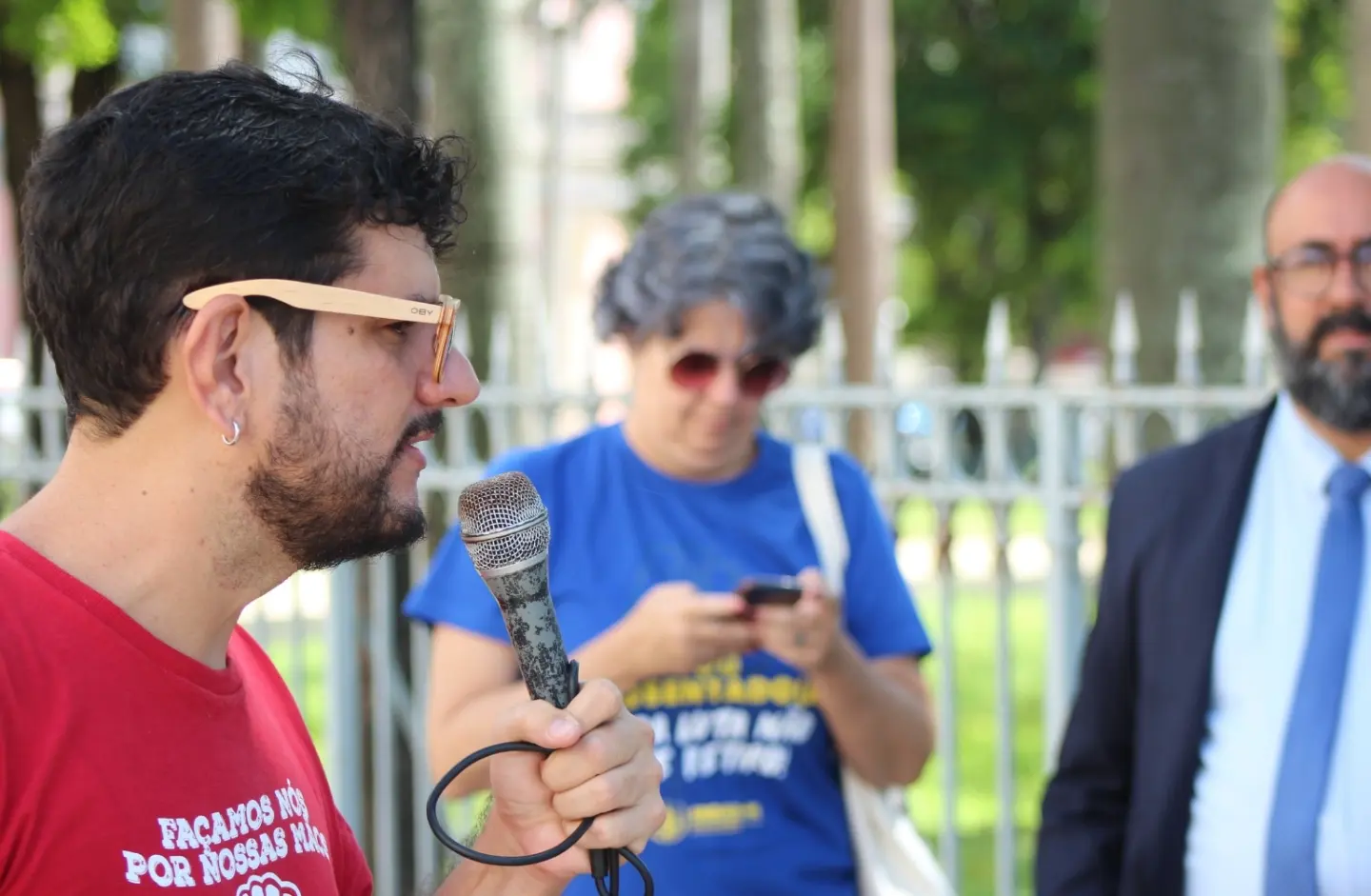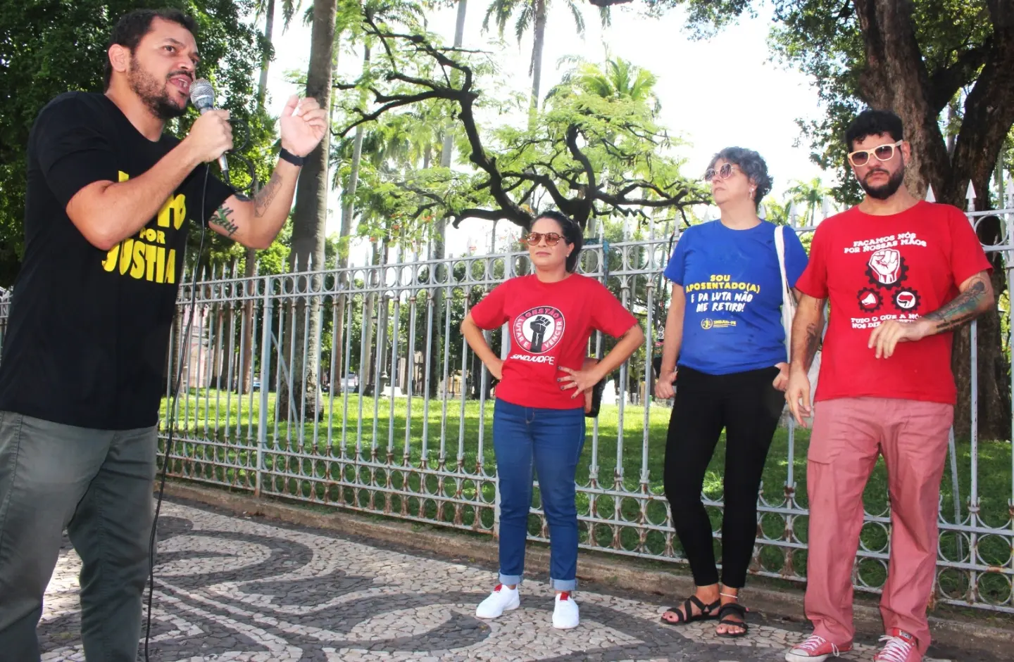 O ato político contou com a presença do Coordenador Geral do SINDJUD-PE, Alcides Campelo; da Coordenadora de Assuntos Jurídicos, Mariana Figueiroa; da Coordenadora de Gênero, Raça e Etnia, Karyna Almeida; do Coordenador de Administração Giuseppe Mascena; e do advogado e membro da assessoria jurídica do Sindicato, Jesualdo Campos.