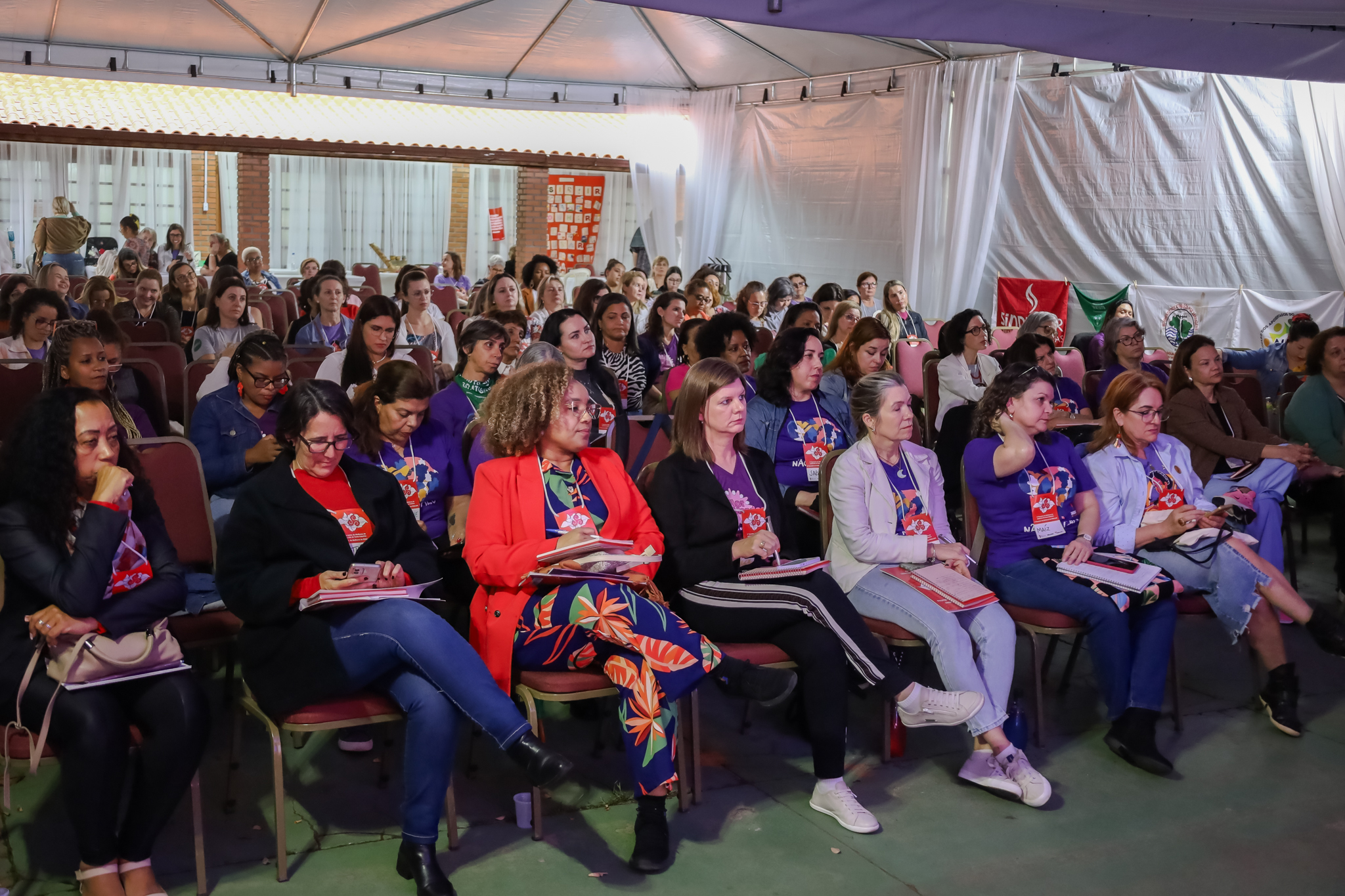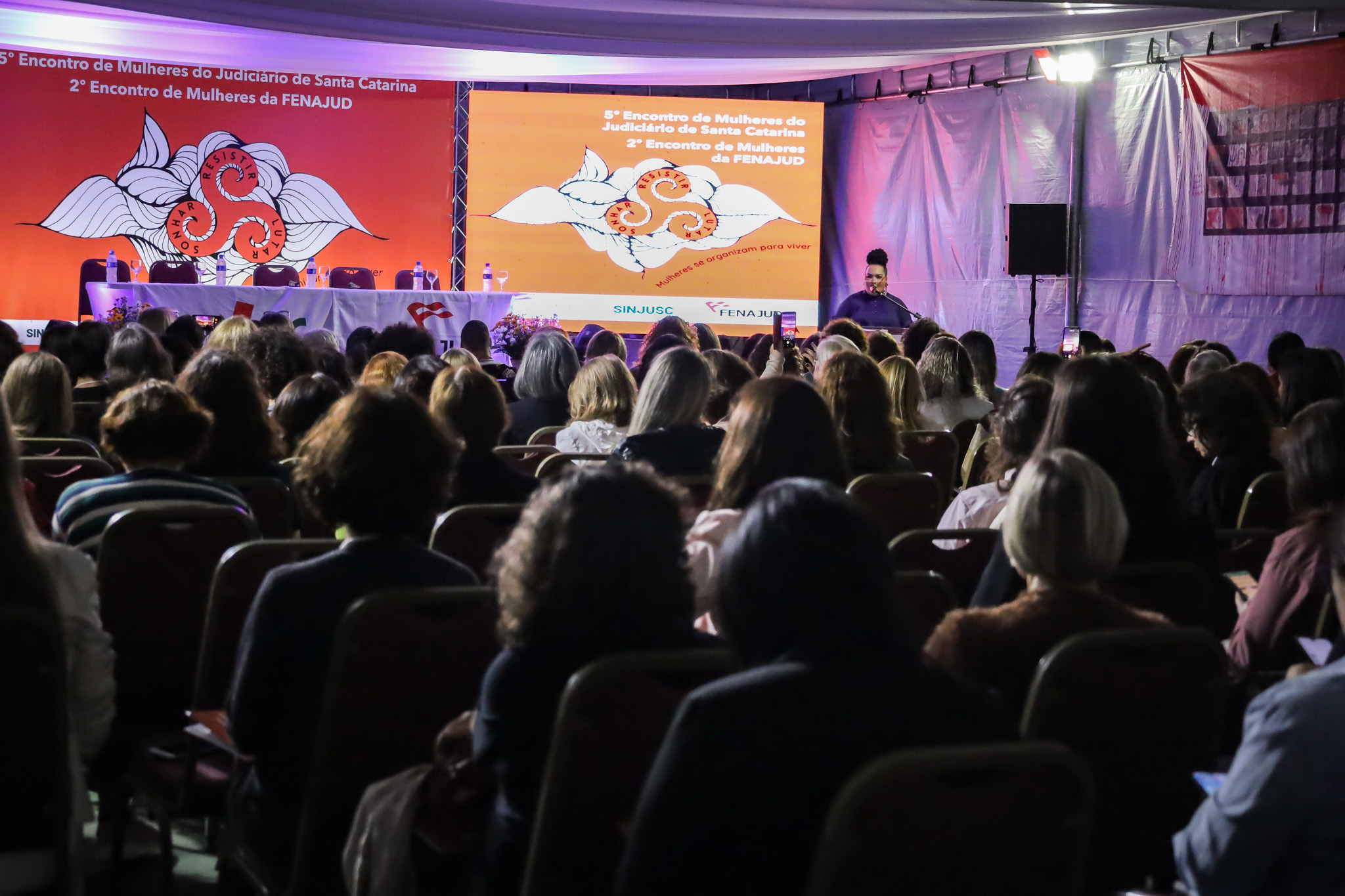 Mulheres de diversas regiões do país participaram nos dias 29 e 30 de setembro de 2023 do 2° Encontro de Mulheres do Judiciário Catarinense e do 5° Encontro de Mulheres da Fenajud, em Florianópolis/SC, com o tema “Resistir, Lutar e Sonhar: Mulheres se organizam para viver”. O SINDJUD-PE marcou presença no evento representado por uma delegação com seis integrantes do Coletivo Flor de Mandacaru, contribuindo para o debate e potência da organização das mulheres na sociedade.
