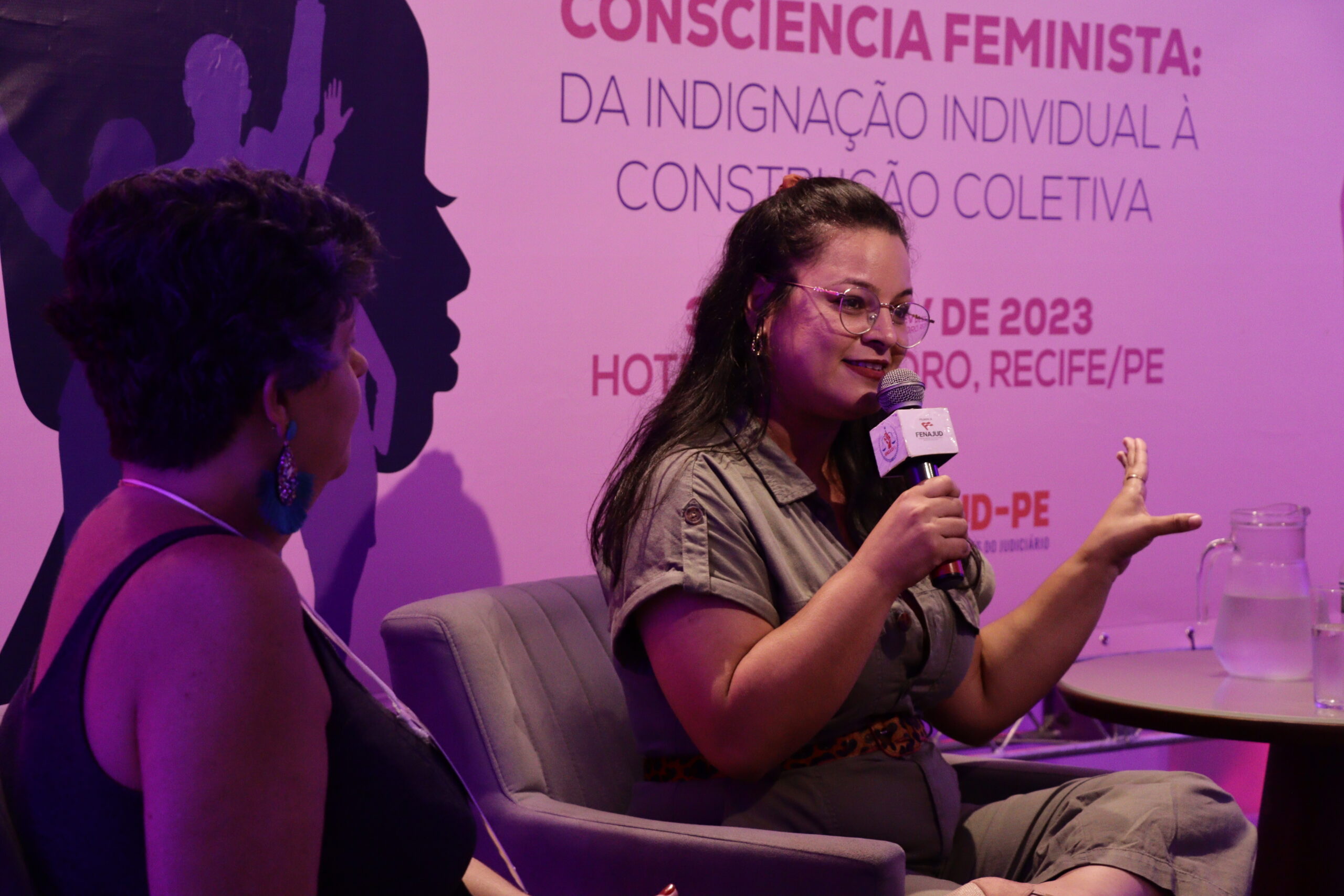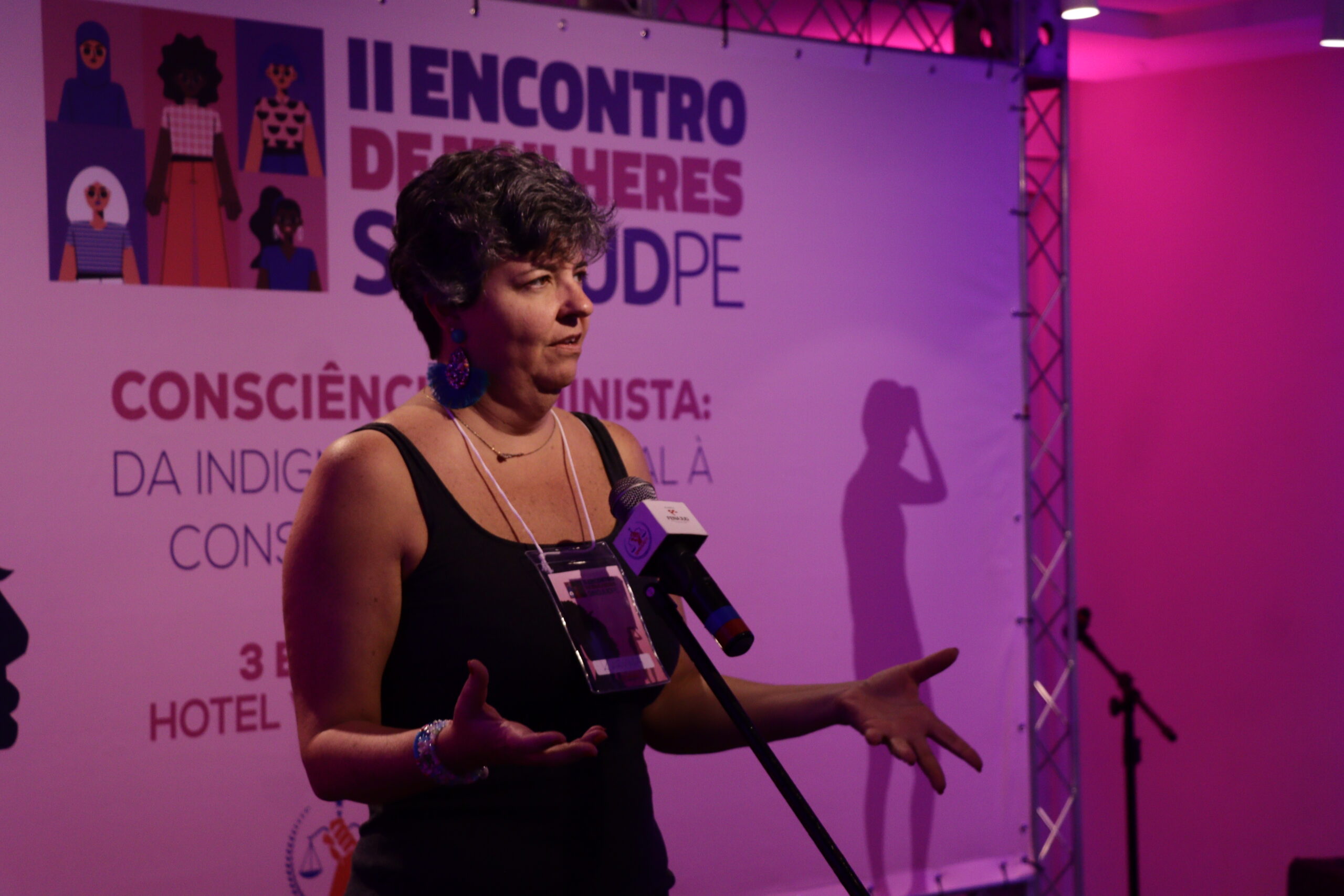 “É um evento que já está na minha agenda familiar, vai ficar na minha agenda de vida, na minha agenda sindical. Para mim, encontros como esse reafirmam o compromisso de nós mulheres servidoras do judiciário pernambucano, o compromisso com essa luta sindical. Com as pautas de interesse coletivo, feminino, feminista. E para além disso, é um evento que me fortalece como servidora, mulher e negra. Estar ocupando um espaço como esse me deixa cada vez mais feliz de estar mostrando e deixando claras as minhas necessidades enquanto servidora mulher negra e reencontrando pessoas, encontrando pessoas que têm as mesmas lutas que você, outras mulheres, com outras vivências. Eu acho que é um evento que nos faz crescer enquanto ser humano”, afirmou Keilla Reis, pedagoga do TJPE.