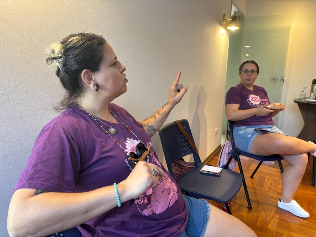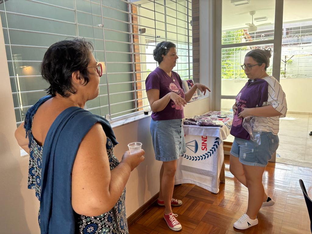“Debatemos um texto, fizemos diversos comentários, apresentamos a sede para as mulheres e nos fortalecemos. O objetivo do Coletivo é exatamente o fortalecimento das mulheres para a participação no espaço sindical, seja como base, seja como dirigentes. Fizemos, inclusive, uma chamada para a Assembleia. A coordenadora Keilla fez essa fala de convocar as mulheres a participarem da Assembleia, a estarem presentes, destacando a importância da luta coletiva. Enquanto coordenadora de Gênero na FENAJUD, eu fico muito satisfeita porque esse coletivo é um fruto desse trabalho da coordenação da Federação junto com a coordenação do SINDJUD-PE para o fortalecimento das mulheres. É mais um Coletivo que nasce, é mais um Coletivo que se reúne presencialmente, que começa a se estabelecer para fomentar e fortalecer a participação das mulheres no espaço dos sindicatos”, contou Ana Carolina Lôbo.