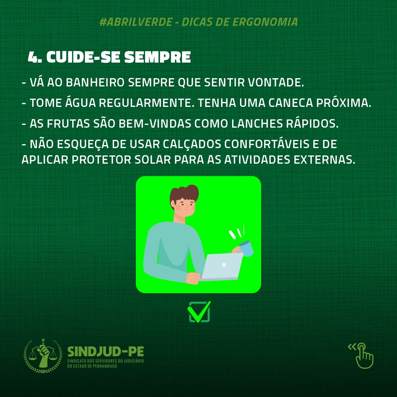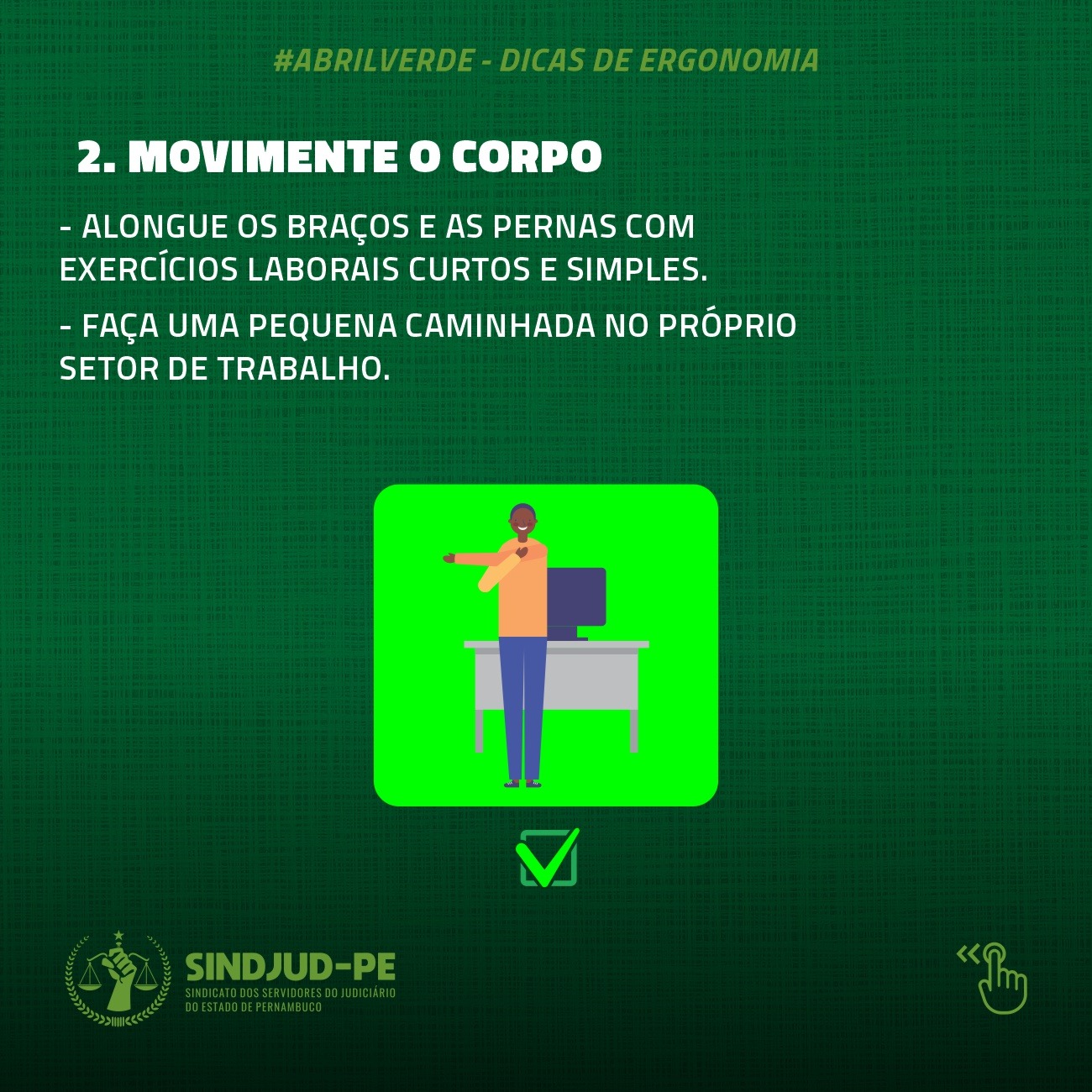 Em muitos casos, os trabalhadores e trabalhadoras são condicionados/as a realização de atividades que exigem posturas repetitivas ou de pouco movimento, somando horas na frente de mesas e computadores, e se os cuidados necessários não forem observados, os problemas serão inevitáveis.