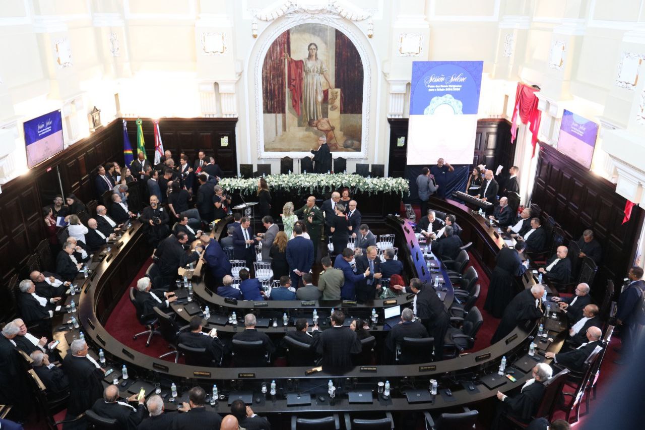 Um dia após a Assembleia Geral Extraordinária de Deflagração da Campanha Salarial 2024, realizada no dia 01/02 em frente ao edifício Paulista Baptista, o SINDJUD-PE participou da cerimônia de posse da nova Mesa Diretora do Tribunal de Justiça de Pernambuco (TJPE) representado pelo Coordenador Geral Giuseppe Mascena; pela Coordenadora de Administração Karyna Almeida; e a Coordenadora de Assuntos Jurídicos Mariana Figueiroa. O evento realizado no dia 2 de fevereiro no Palácio da Justiça foi marcado pela entrega da pauta de reivindicações da categoria ao Des. Ricardo Paes Barreto, novo presidente do Tribunal.