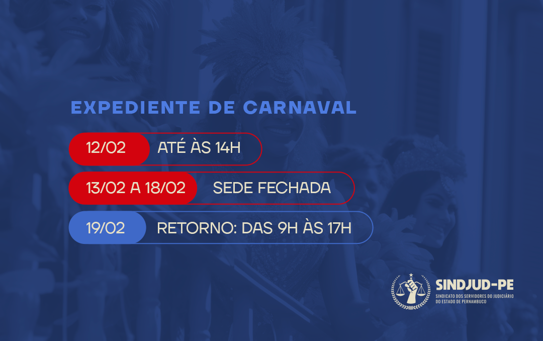 - De 13/02 a 18/02, a sede estará fechada.
