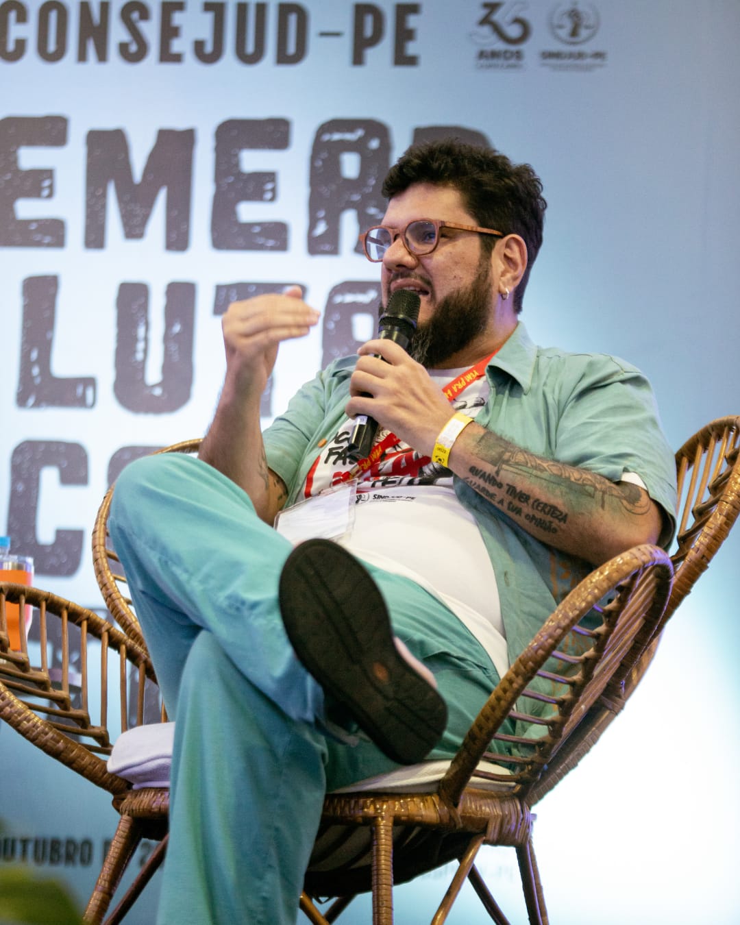 À tarde, o economista Cid Cordeiro conduziu a roda “Orçamento público em disputa: há espaço para valorização dos servidores?”, destacando que o orçamento público revela as prioridades do Estado e reforçando que a valorização das servidoras e dos servidores deve ser entendida como investimento em Justiça e democracia — e não como despesa.