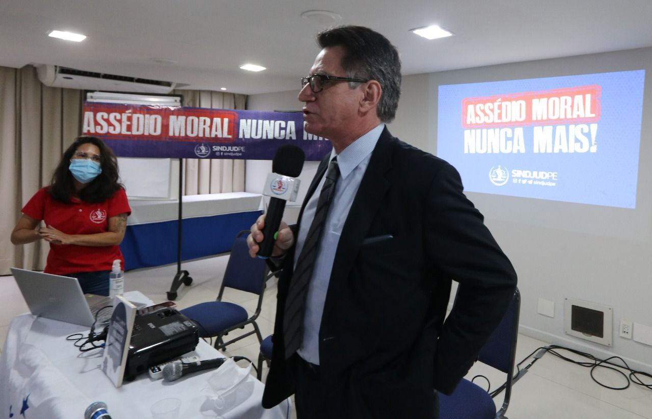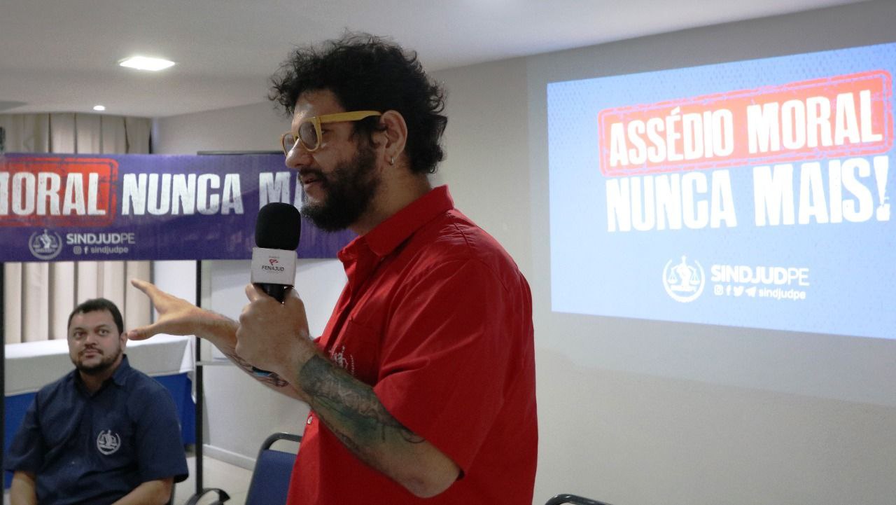 O coordenador geral do SINDJUD, Alcides Campelo, iniciou o evento com um panorama em torno da problemática, destacando o fato de o assédio moral não ser somente uma realidade no Tribunal de Justiça de Pernambuco, mas de outras instituições públicas ou privadas do país, enfatizando ainda a urgência das mobilizações pelo combate e resolução dos casos que são registrados. Giuseppe Mascena, Mariana Figueiroa e Karyna Almeida, integrantes da diretoria, também contribuíram com proposições relacionadas ao assunto durante o encontro.