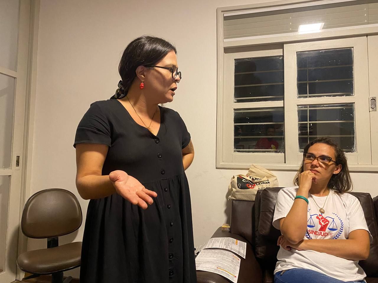 Hugo Andrade, Coordenador de Previdência, Saúde e Segurança do Trabalho, relembrou os avanços da gestão anterior e a importância de aprimorar a qualidade da luta sindical. “Esse é um espaço que nos leva tanto a pensar perspectivas, quanto também avaliar as ações que realizamos recentemente. Eu que venho da gestão passada, avalio, por exemplo, que um dos grandes acertos do trabalho da gestão Lutar e Vencer foi ter melhorado a qualidade da luta sindical e isso resultou na ampliação do trabalho de base na capital e no interior, na melhoria da comunicação, se apropriando das ferramentas tecnológicas, redes sociais, sobretudo durante a pandemia. Melhorou também o assessoramento técnico do SINDJUD, seja jurídico, econômico, contábil e essa qualidade também resultou no feito inédito de que pela primeira vez na história do Sindicato temos uma maioria feminina na direção”, apontou.