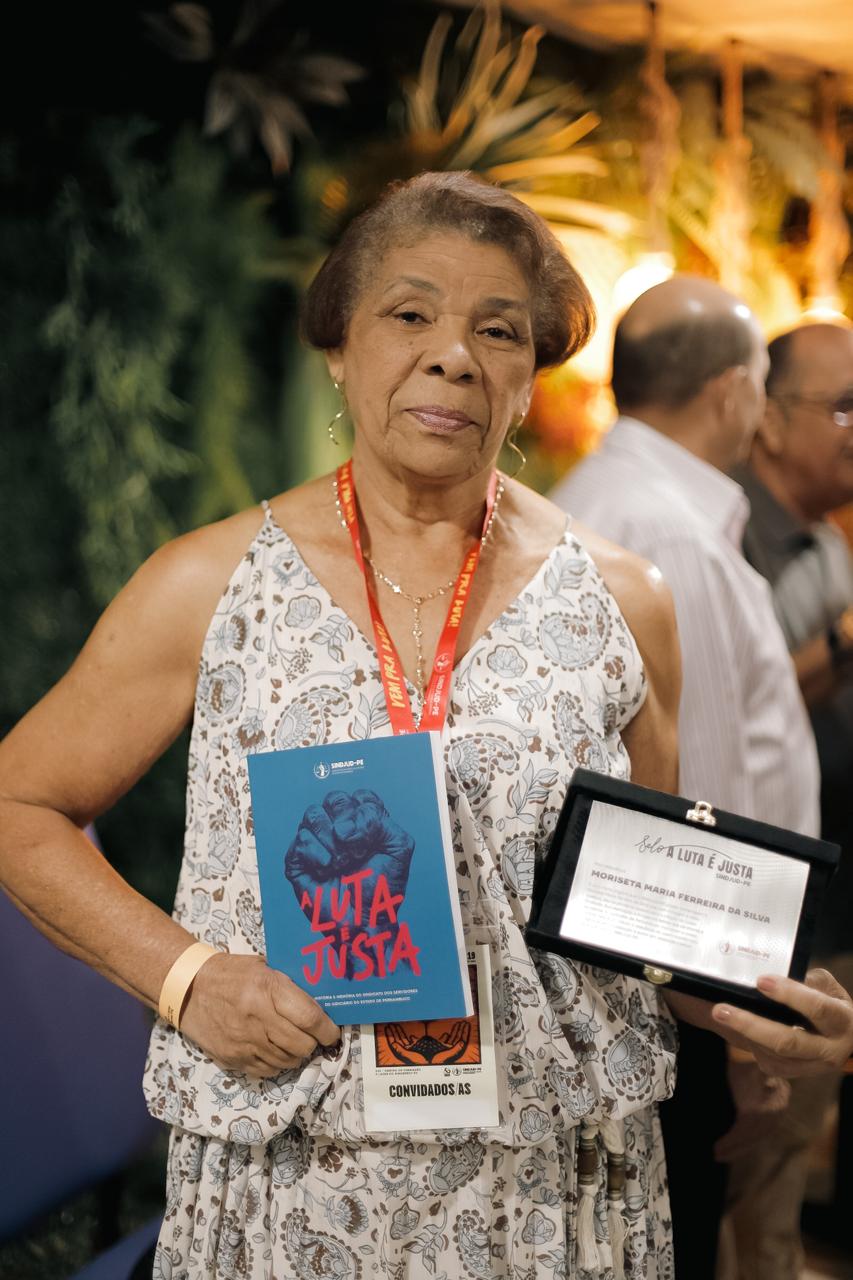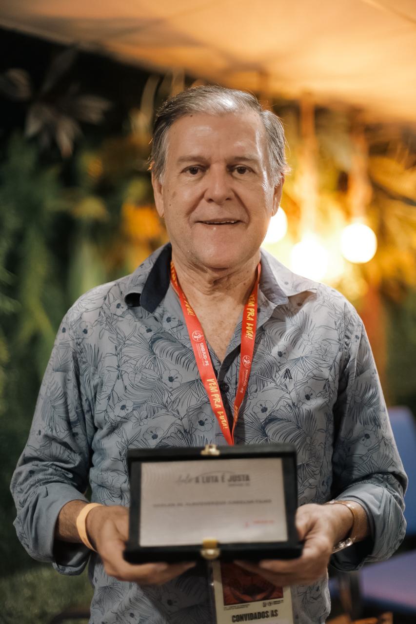 Em seguida, foi realizada a Ação de Memória e Homenagem, com a entrega das placas do Selo “A Luta é Justa!”, reconhecendo a dedicação e o compromisso de pessoas que contribuíram de forma significativa com a história do sindicato.