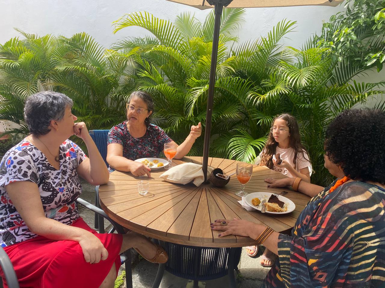 As participantes desfrutaram de um café da manhã e almoço preparado por um restaurante especializado em culinária de matriz africana, valorizando os sabores e saberes ancestrais.