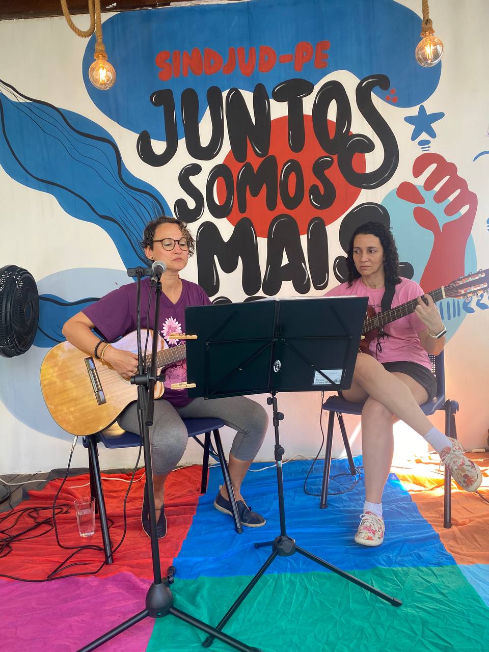 As servidoras Wilza Saraiva e Alice Guaraná emocionaram com um momento musical, interpretando canções de mulheres negras e LGBTs que marcaram a história da música brasileira.