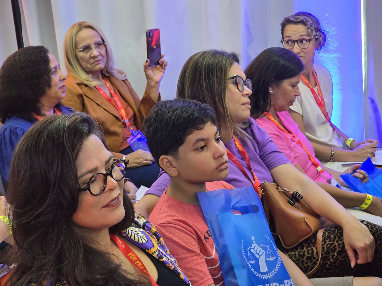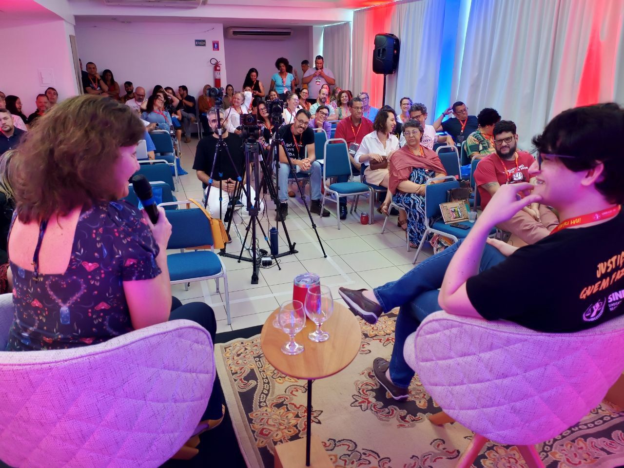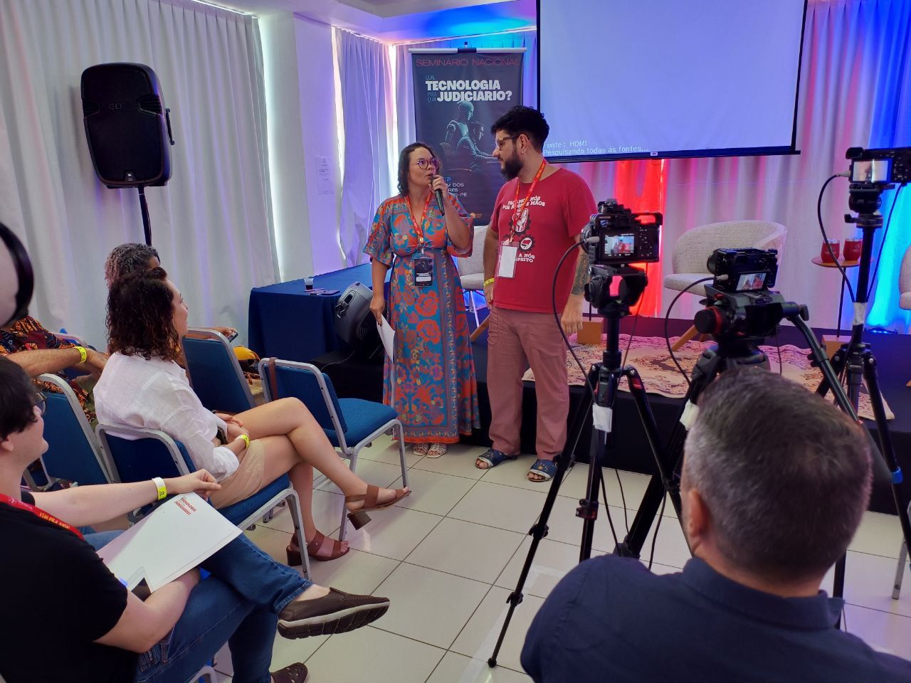 O Seminário foi apresentado por Jordanna Monteiro, Coordenadora de Formação Política e Sindical do SINDJUD, e pelo Coordenador Geral Giuseppe Mascena, que também emocionou os participantes ao declamar poesias sobre as lutas e os desafios da categoria. No evento, também foram realizados sorteios de copos térmicos do SINDJUD-PE e de livros dos(as) palestrantes da programação, reforçando o clima de acolhimento da atividade.