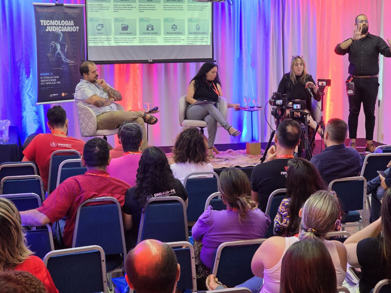 O Seminário teve início com a mesa de abertura “Qual Tecnologia para qual Judiciário?”, coordenada por Keilla Reis (SINDJUD-PE), e contou com a participação de Alcides Campelo (SINDJUD-PE) e Carolina Costa (SINJUSC), que abordaram as diferentes perspectivas e desafios para a implementação de tecnologias que considerem o trabalhador como centro dos processos.