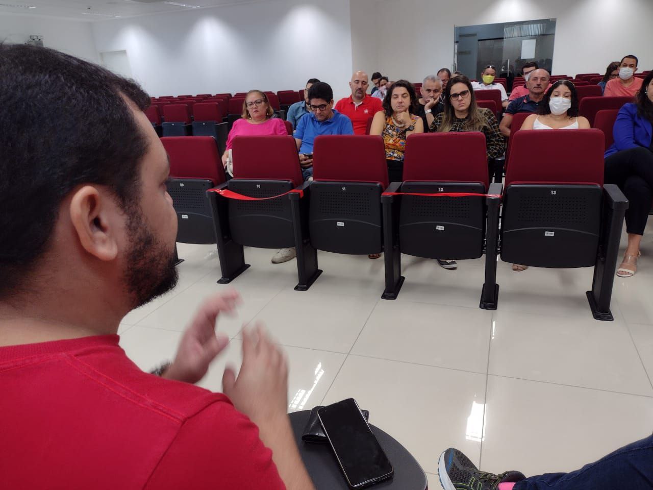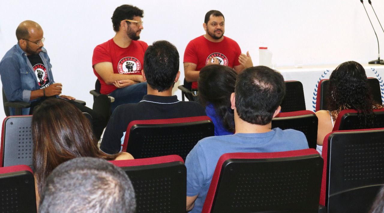 O Coordenador Geral do SINDJUD, Alcides Campelo, mediou a conversa ao lado do Coordenador de Administração, Giuseppe Mascena, e do Coordenador de Cultura, Esporte e Lazer, Adleiton Torres. A atividade faz parte do cronograma mobilizações que está sendo posto em prática, e que reafirma o compromisso da Gestão Lutar e Vencer com a descentralização e interiorização das ações com os trabalhadores e trabalhadoras do Tribunal de Justiça de Pernambuco.