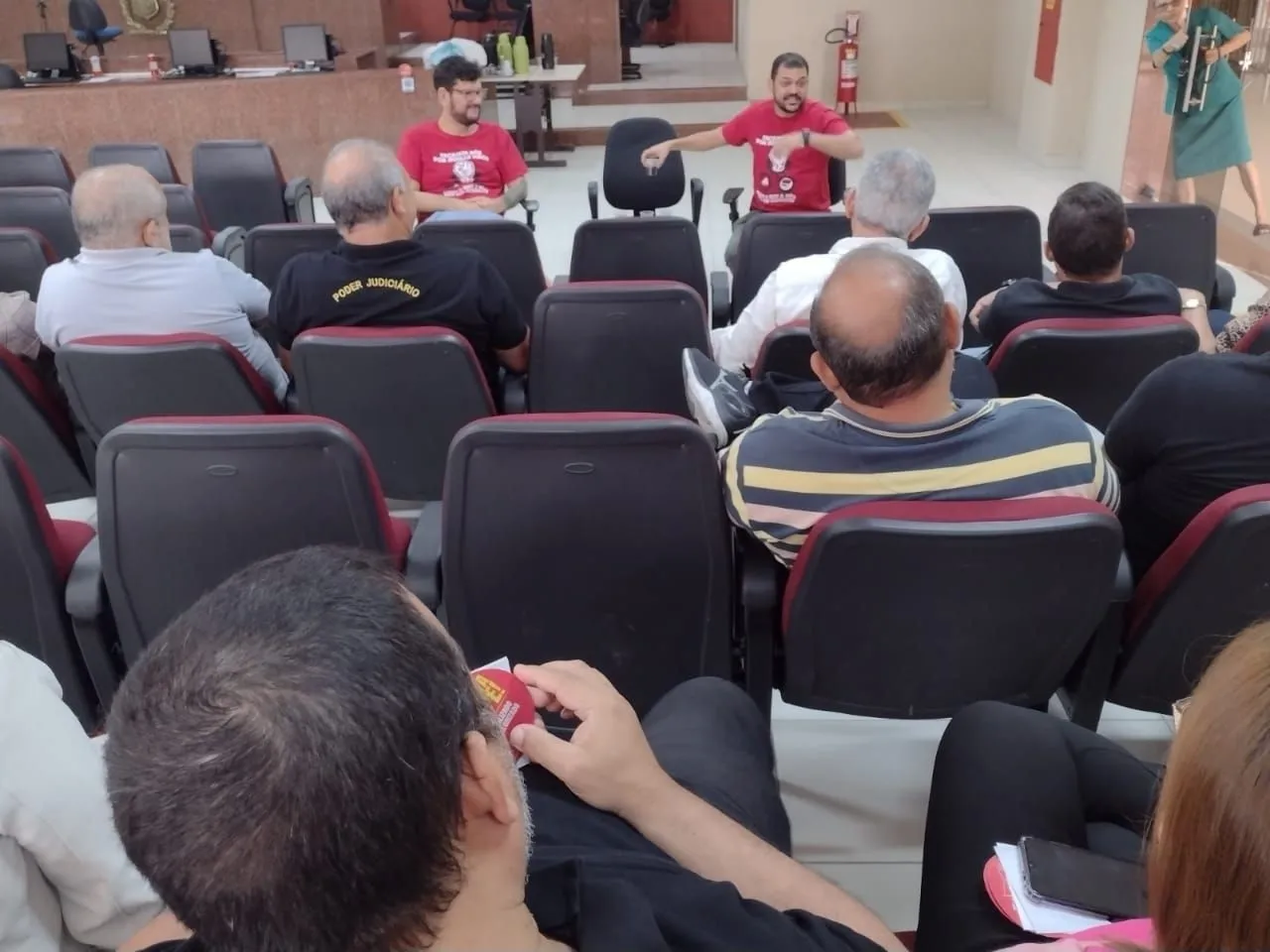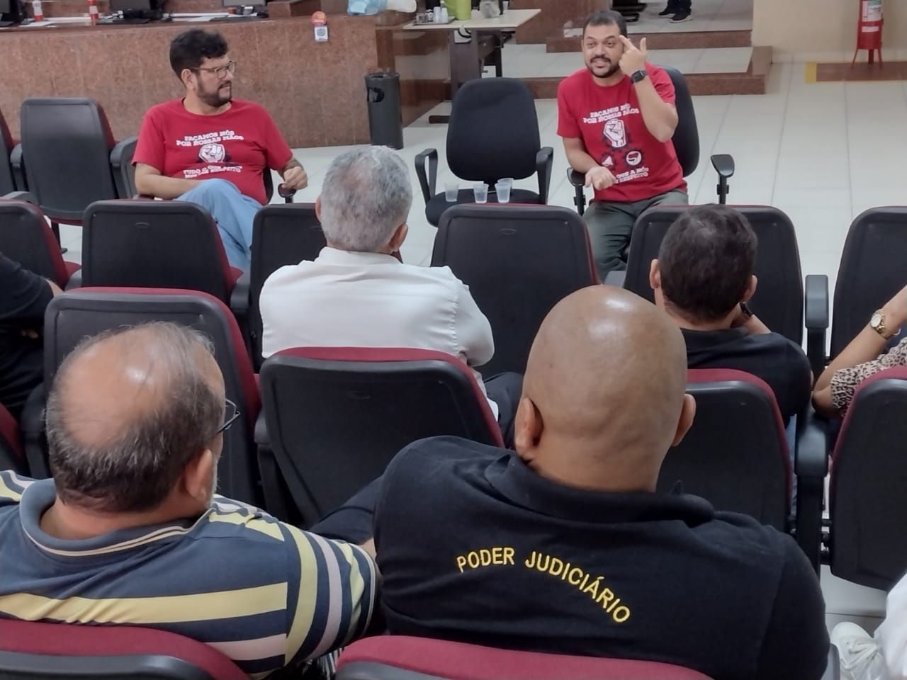 A atividade contou com a presença de Alcides Campelo, Coordenador-Geral do SINDJUD, e Giuseppe Mascena, Coordenador de Administração, que destacaram a relevância da Roda de Diálogos para a construção e efetivação de estratégias e ações de fortalecimento para a campanha salarial deste ano.