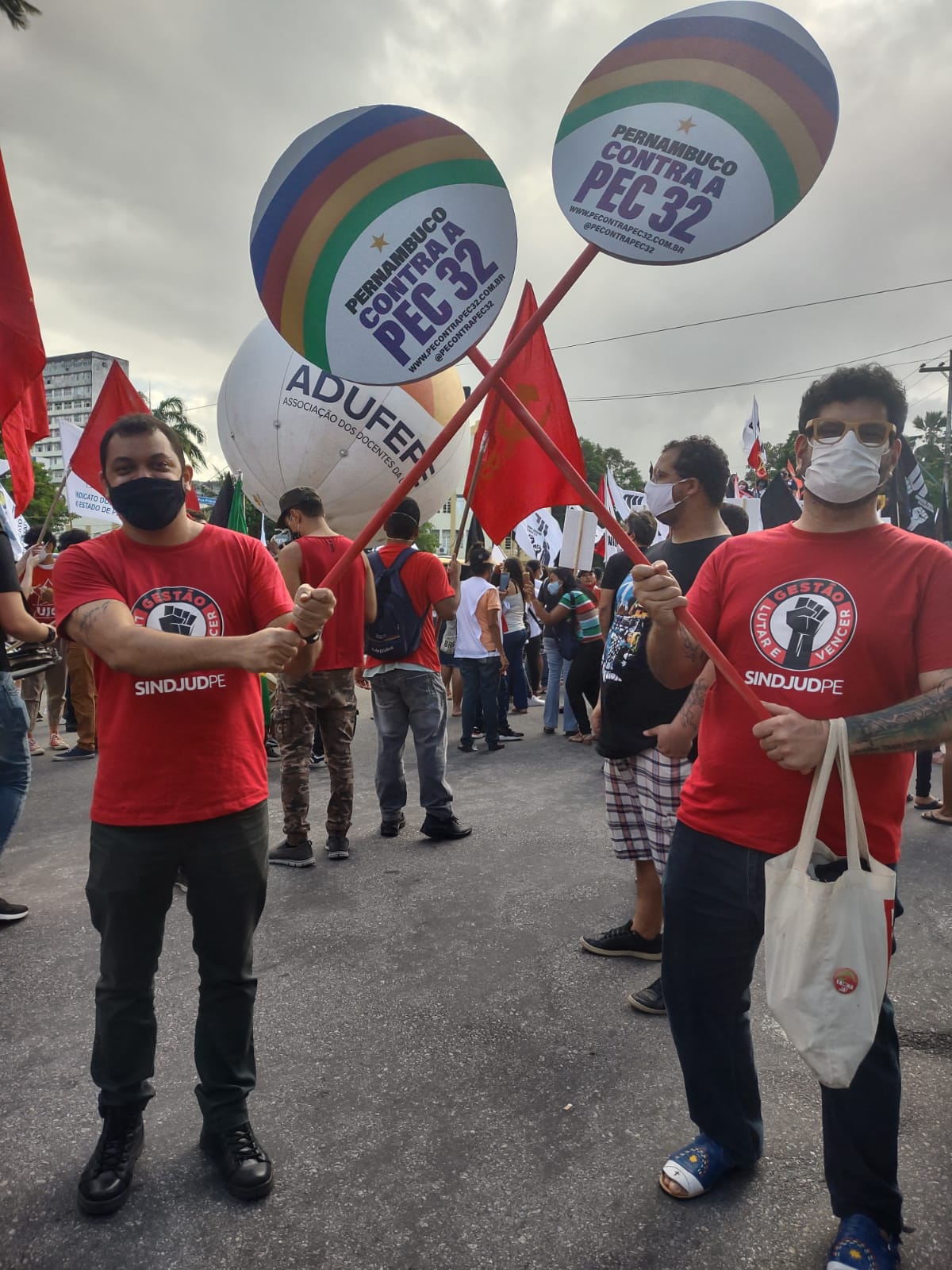 O SINDJUD, representado por seu coordenador geral Alcides Campelo, também participou de um ato em frente à Assembleia Legislativa de Pernambuco no dia 14 pela manhã, junto com vários outros sindicatos. Além disso, nossa campanha conjunta com o Sindsemppe, Sindilegis e Sindicontas “Pernambuco contra a PEC 32” segue a todo vapor, trazendo informação a respeito das verdades e mentiras sobre o serviço público no Brasil e colaborando na pressão virtual aos deputados do estado.