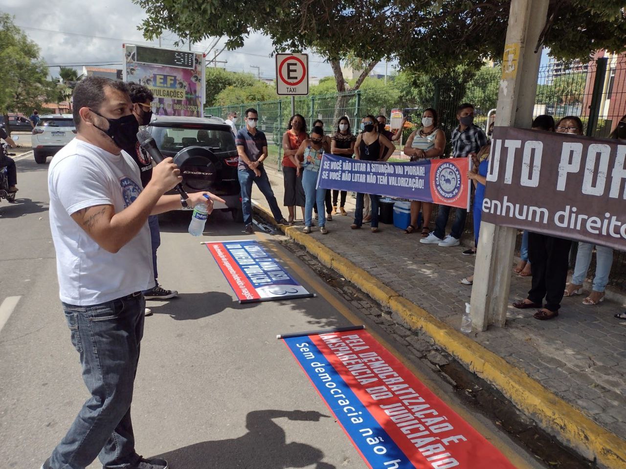 Um carro de som deu suporte para as intervenções políticas e culturais realizadas em microfone aberto, que contou com fala do Coordenador Geral do sindicato, Alcides Campelo, do Coordenador de Administração e poeta, Giuseppe Mascena, além do ator e poeta Gleison Nascimento e de servidores/as presentes. A importância da filiação para o fortalecimento da categoria também foi destacada.