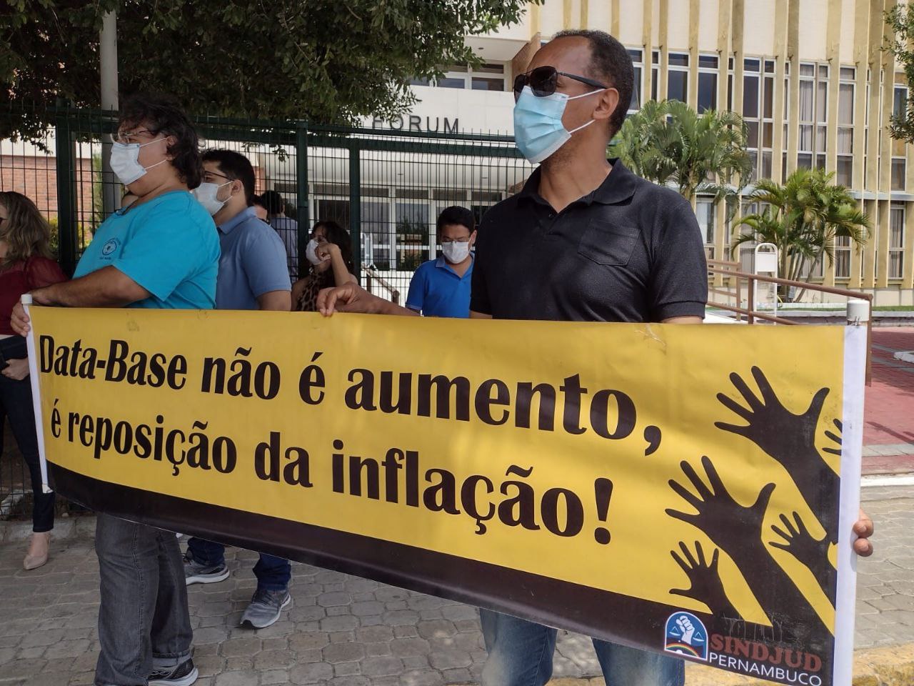 Com faixas e cartazes exibindo as palavras de ordem que fazem parte da campanha salarial 2022, trabalhadores e trabalhadoras do TJPE foram para a rua pedir pela reposição das perdas salariais inflacionárias e melhores condições no ambiente de trabalho.